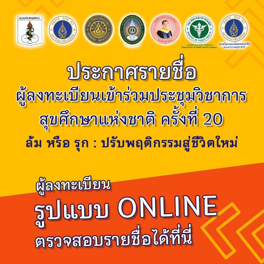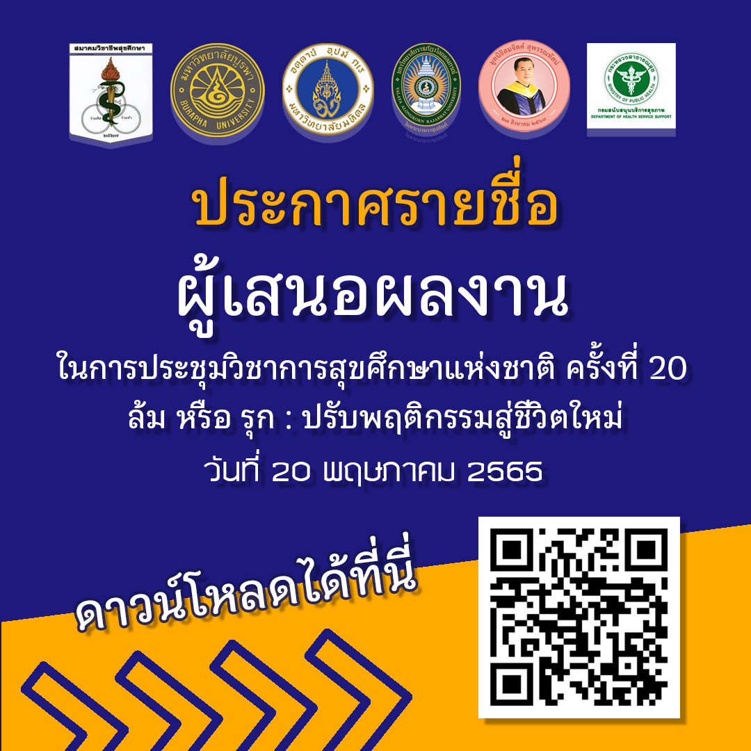ประกาศรายชื่อผู้เสนอผลงาน และกำหนดการประชุมวิชาการสุขศึกษาแห่งชาติ ครั้งที่ 20